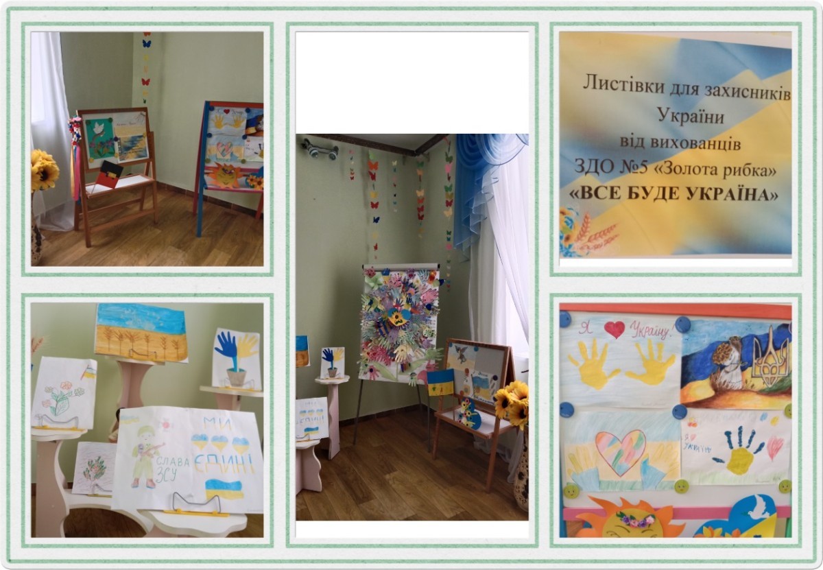 У закладі проведена розвага та флешмоб " З Україною в серці!", також вихованцями разом з батьками було виготовлені листівки для захисників України " "Все буде Україна". Листівки будуть передані для захисників на Херсонський напрямок. Разом до ПЕРЕМОГИ!!!